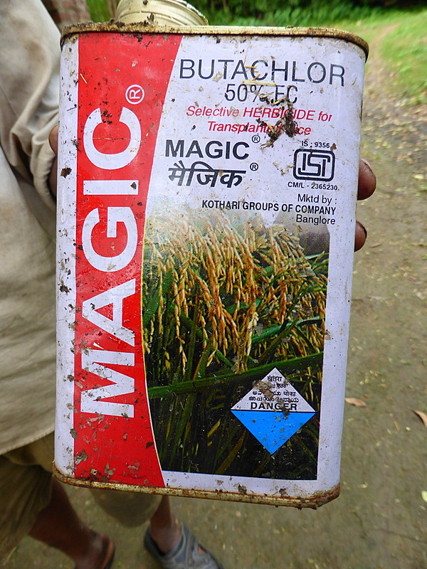 My second site for rice is the Carbury Farm, only a couple of kilometers away. I worked in a large field of a single rice variety and one of the graduate students of the Wildlife Institute, Ms. Preeti Virkar, was kind enough to accompany me and help with trap collection. This season the farm workers have used “Magic” herbicide, “Lethal” pesticide, and synthetic fertilizers. Unfortunately, at Carbury most of the rice husks in the field were formed but empty due to a pest outbreak, following on the heels of a fungal attack. Looks like a very poor harvest there. Exact culprit to be determined.