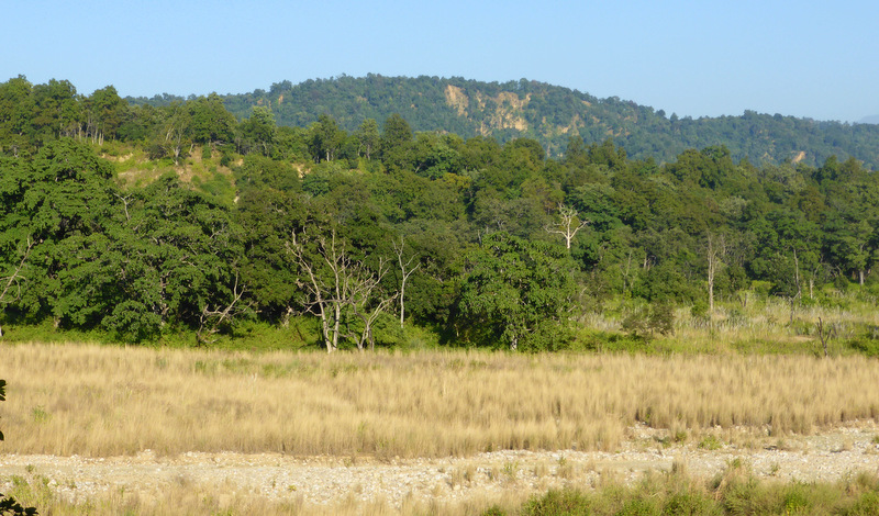 While our neighbor and some of the other researchers were working locally, in the Rajaji National Park, adjacent to Dehradun and Rishikesh, the chances of seeing a tiger in Rajaji are extremely slim–the tiger population in Rajaji is estimated at 16 animals, roaming through a narrow sliver of park that forms a corridor leading to Corbett. Rajaji forms an important area for the movement of tigers in Uttarkhand, and has just been designated a tiger reserve (May, 2013). But odds of seeing the iconic cat are greater in Corbett, home to the highest density of tigers in India: one cat per 100 square kilometers, an estimated 164 tigers in the park. Corbett is in the Kumaon region of Uttarkhand, a dry forest, just south of the Himalayan foothills and a 6 hour drive East of Dehradun. In the post-monsoon season, many rivers in the park are just dry river beds, excellent for registering tiger tracks, pug marks.