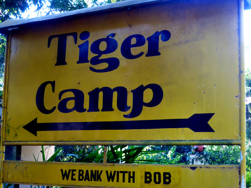 The owners of Tiger Camp, their many employees, the jeep safari companies, elephant safari mahouts, naturalist guides, families that operate laundry services, gift shops, restaurants, and the government employees operating the park make a living from the tourists attracted by the park. They also live in enclosed buildings and transport themselves via motorized vehicles. But the bulk of the people living in this area of India are quite poor, whether nomadic, “forest people”, or rural villagers, and are exposed to tiger attack daily. Given that the human population density of India is among the highest in the world, relocating all the people in the way of the tiger seems unrealistic, yet tiger-human coexistence in the same habitat also seems impossible. Jim Corbett wrote extensively about his experiences tracking and hunting the man-eating leopards of Kumaon to protect rural people who were their potential victims. Relatively few leopards become man-eaters; Corbett speculated that those leopards which became man-eaters acquired a taste for human flesh after eating the poorly buried victims of cholera epidemics that swept through rural India. Our neighbor the tiger researcher explained to me that the relationship between tigers and humans is different from the situation with leopards: “All tigers are man-eaters.”